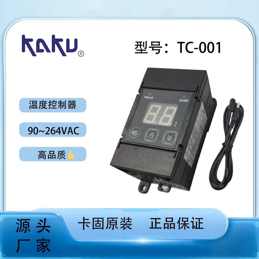 KAKU TC-001是一款由台湾卡固(KAKU)品牌推出的温度控制器,主要用于盘内温度检知以控制冷却风扇的ON/OFF,从而达到省电节能的目的。其产品别名为温度控制器TC-001,控制类型为温度,控制模式为智能温度控制调节器,测量对象为配电柜温度。